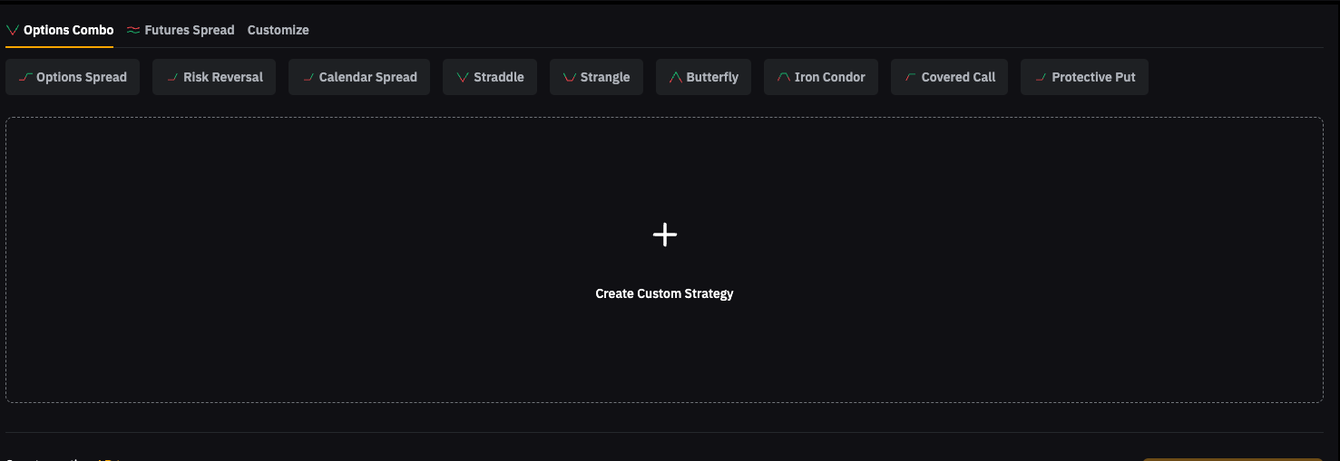 • Customize: Build your own strategy across Spot, Futures and Options.