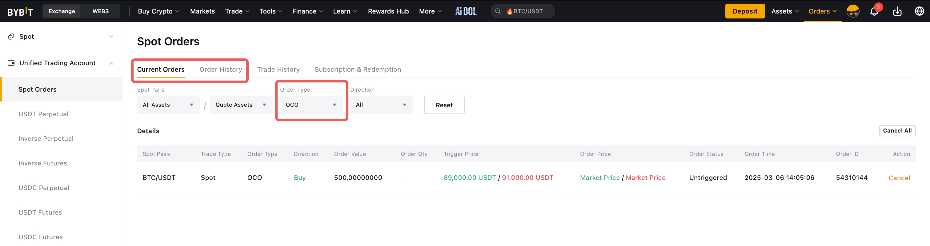 Alternatively, please go to your Unified Trading Account Orders page → Spot Orders → Current Orders or Order History page.
