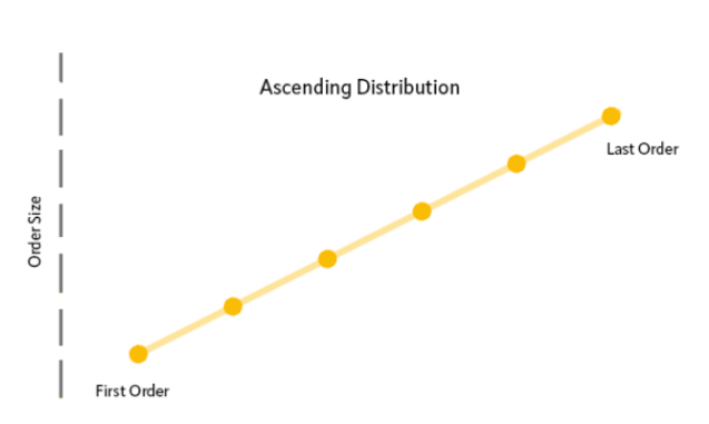 • The Increasing Distribution sets the orders and prices in ascending order.