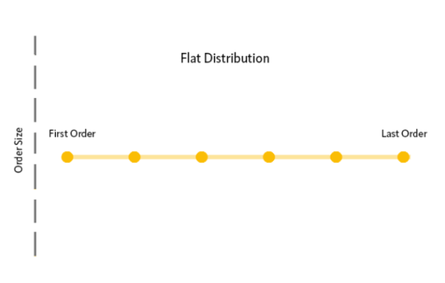 • The Flat or Evenly Split Distribution evenly divides orders and prices across the Order Count.