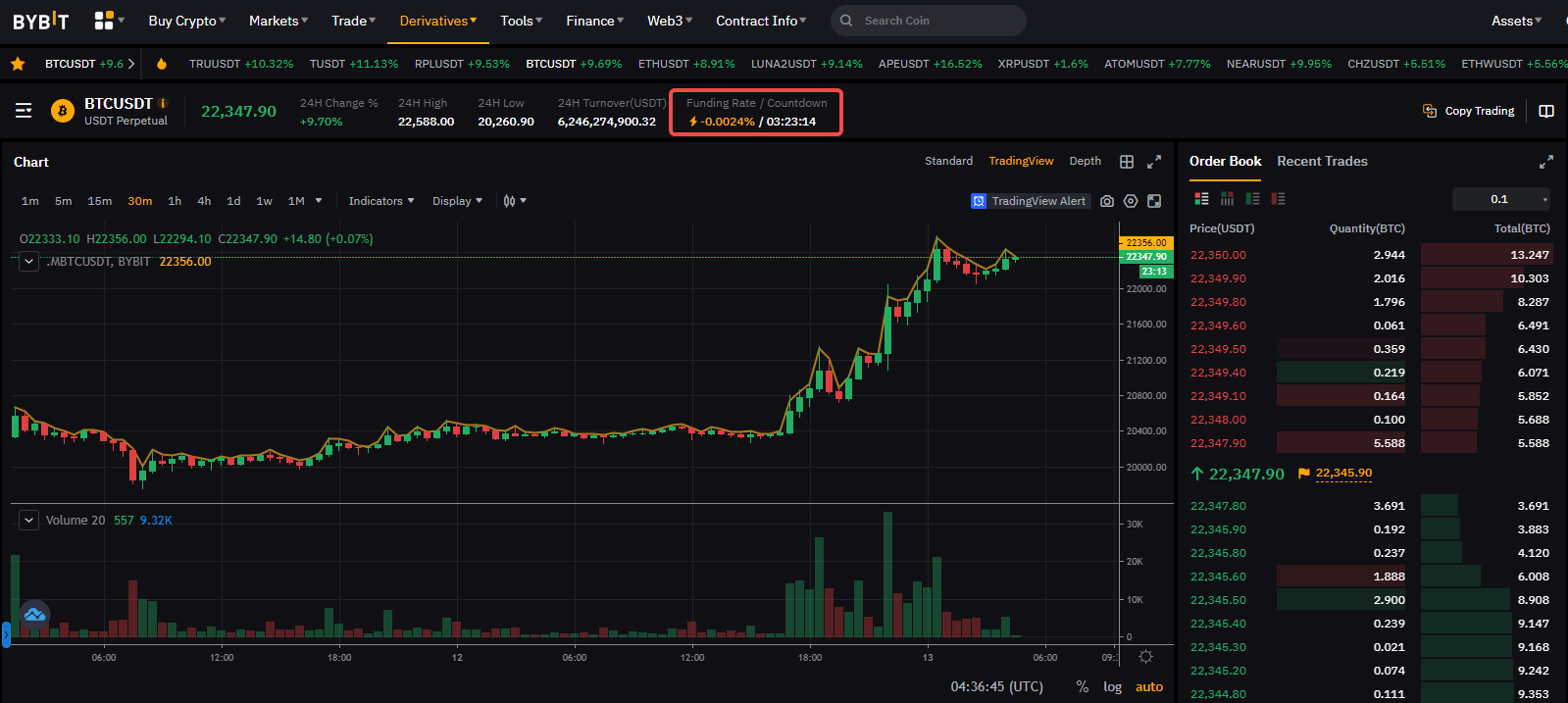 为保持永续合约交易价格与现货价格锚定,平台使用资金费用机制来确保 Bybit 的最新成交价始终锚定全球标准现货价格。具体运作方式如下:如果永续合约市场价格高于现货价格(即资金费率为正),多仓持仓用户将向空仓持仓用户支付资金费用。这会激励交易者开建更多空仓,交易价格就会因此降低,朝着现货价格偏移。
