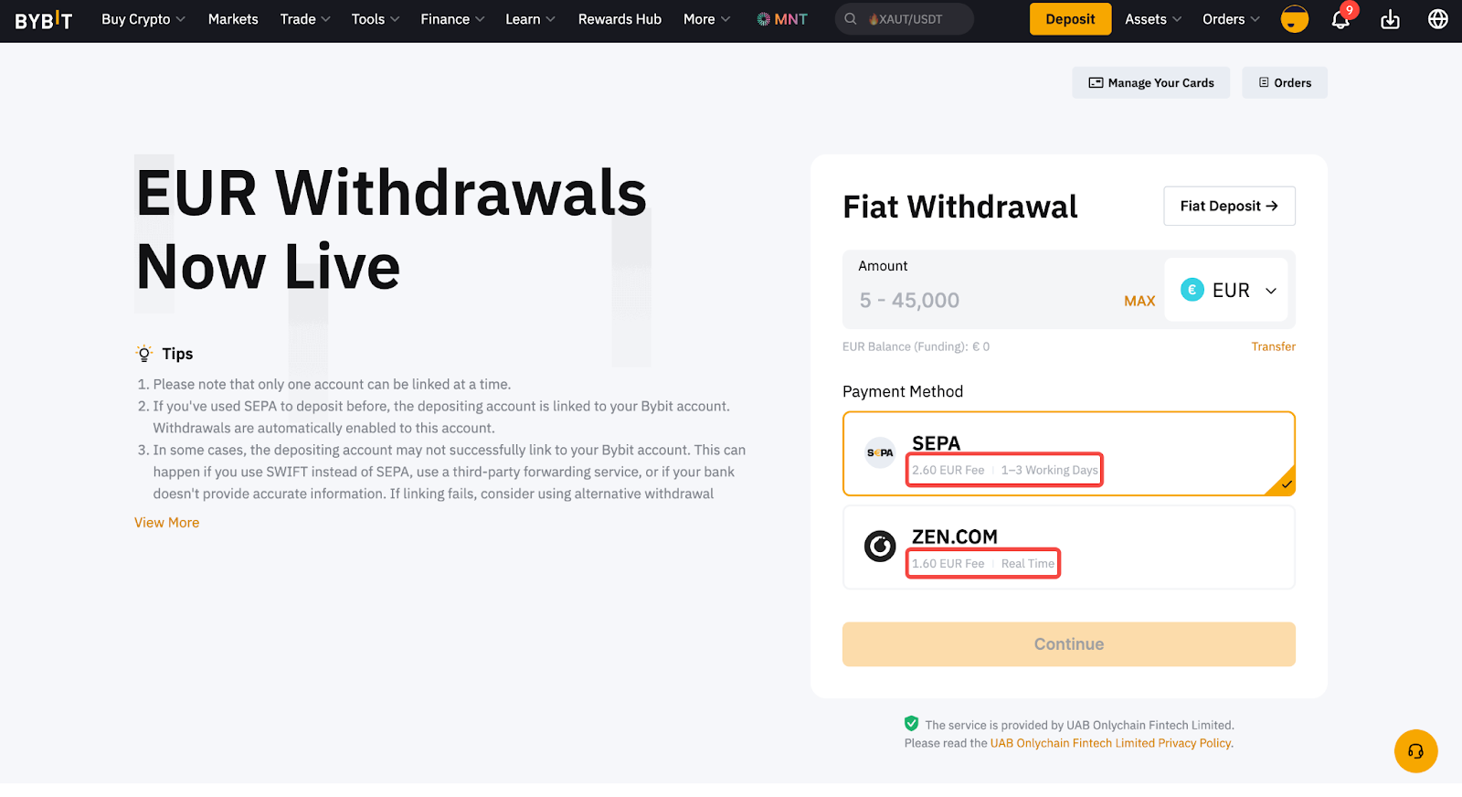 Bybit 将根据币种和支付方式收取交易手续费。订单页上会显示所需费用。