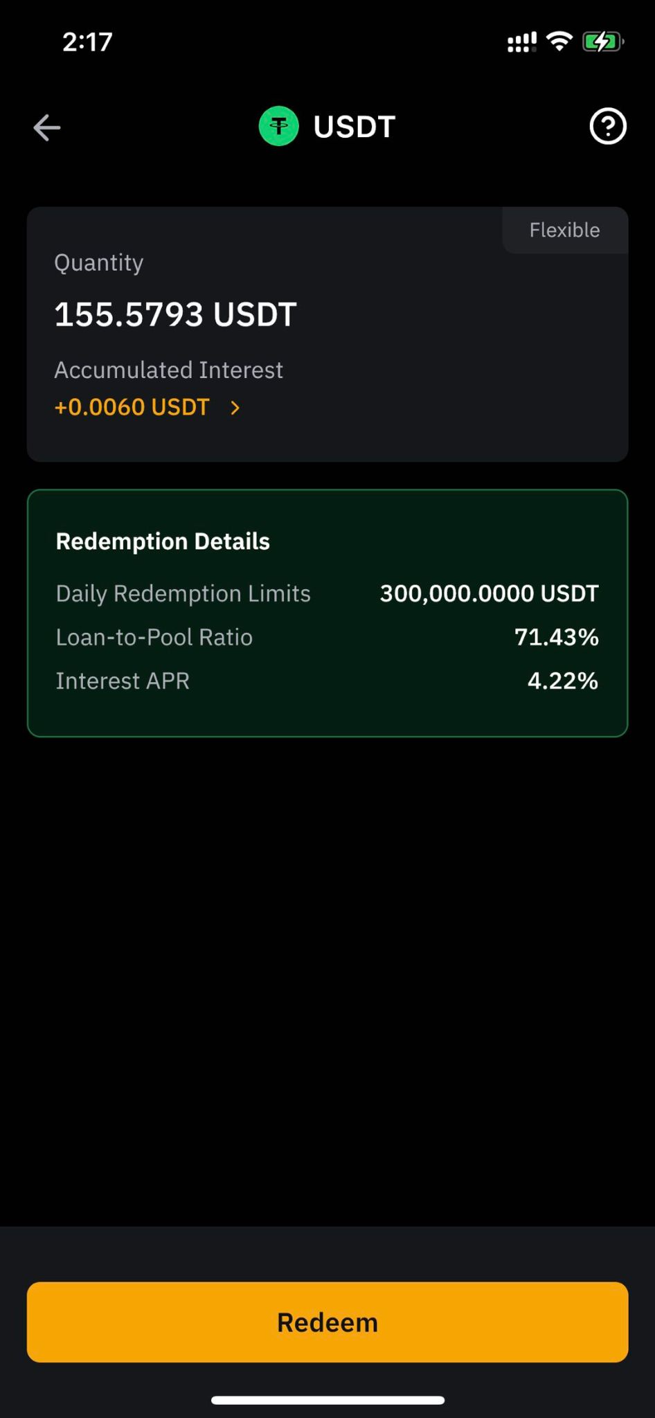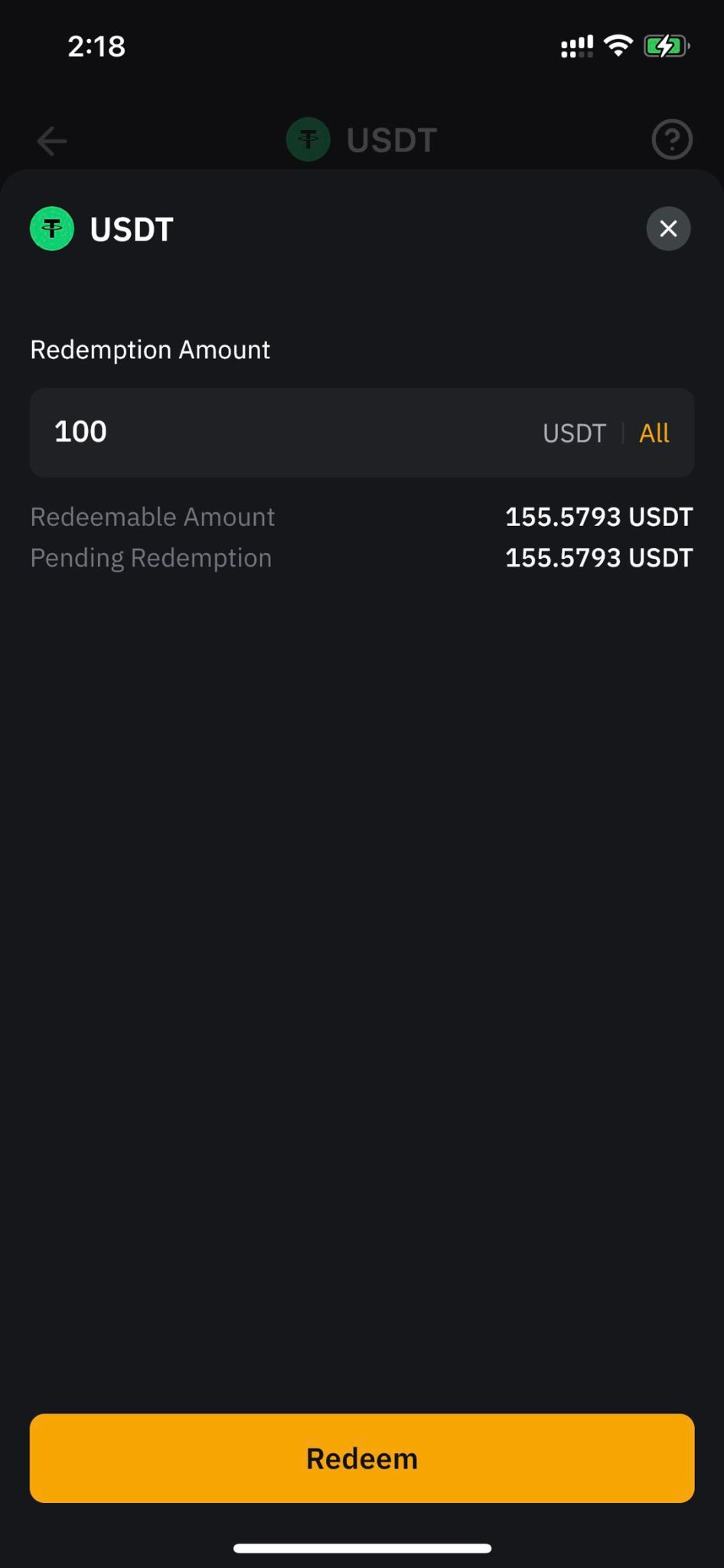 在资金使用率较高或您已达到每位用户的单日赎回限额时,可能会出现可赎回金额低于存入金额的情况。要查看各个币种的单日赎回限额,请参阅此处的文章。
