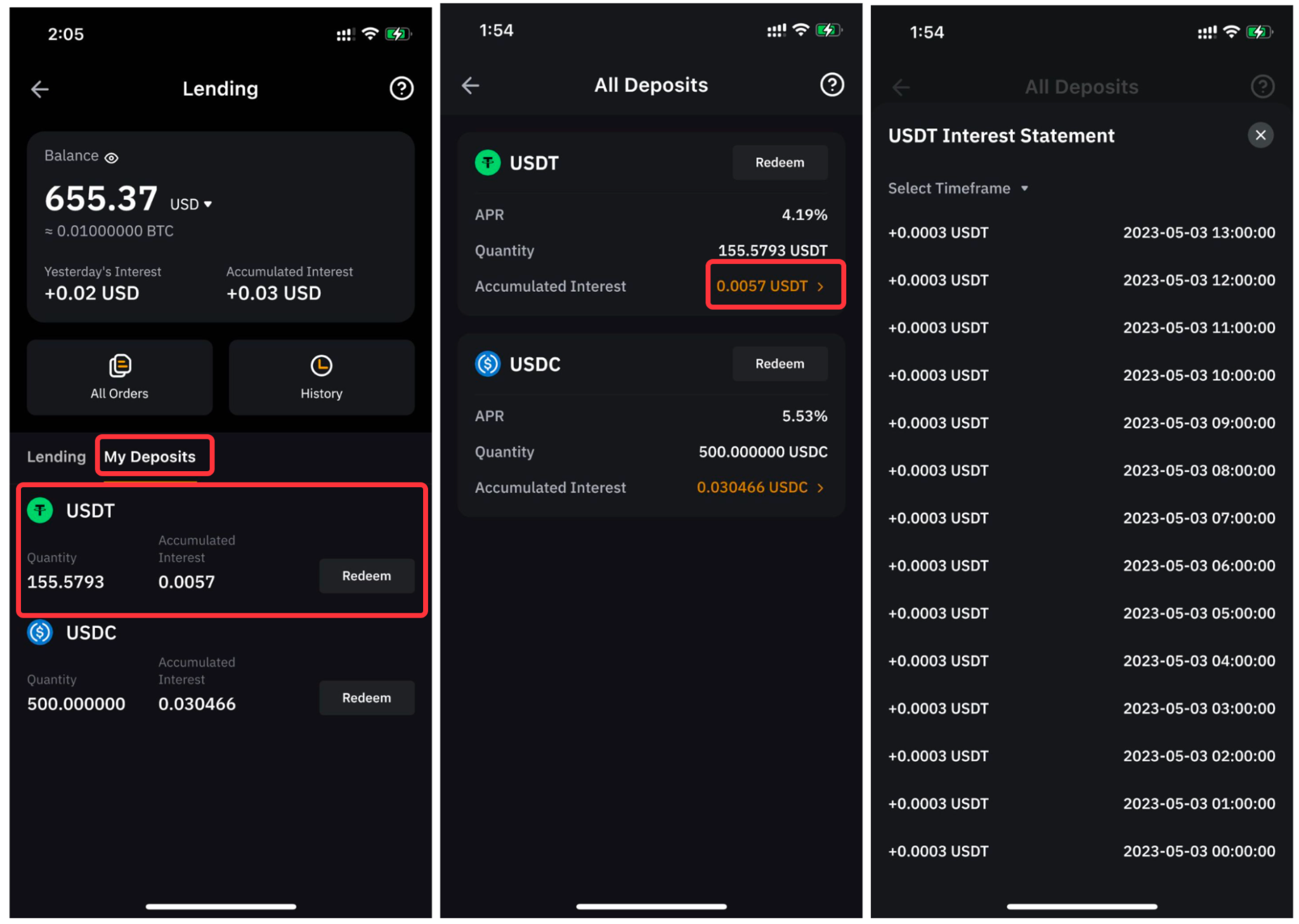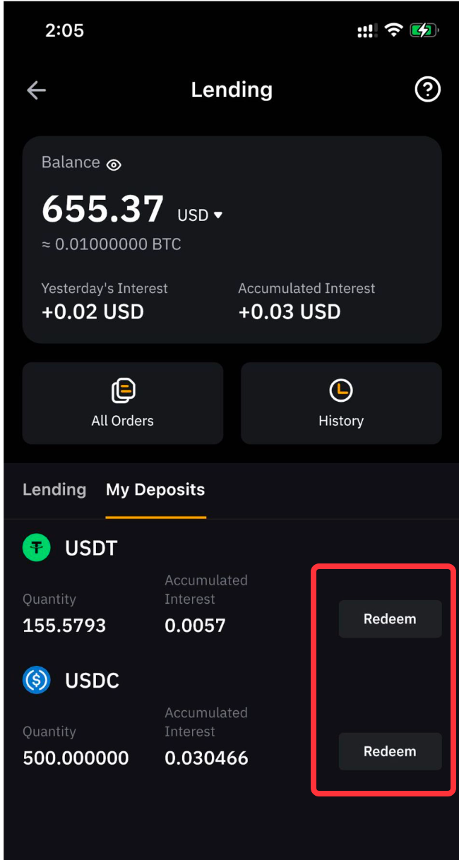 成功赎回后,本金和利息收益将一起发放到您的现货账户或统一交易账户(如果账户已升级)。