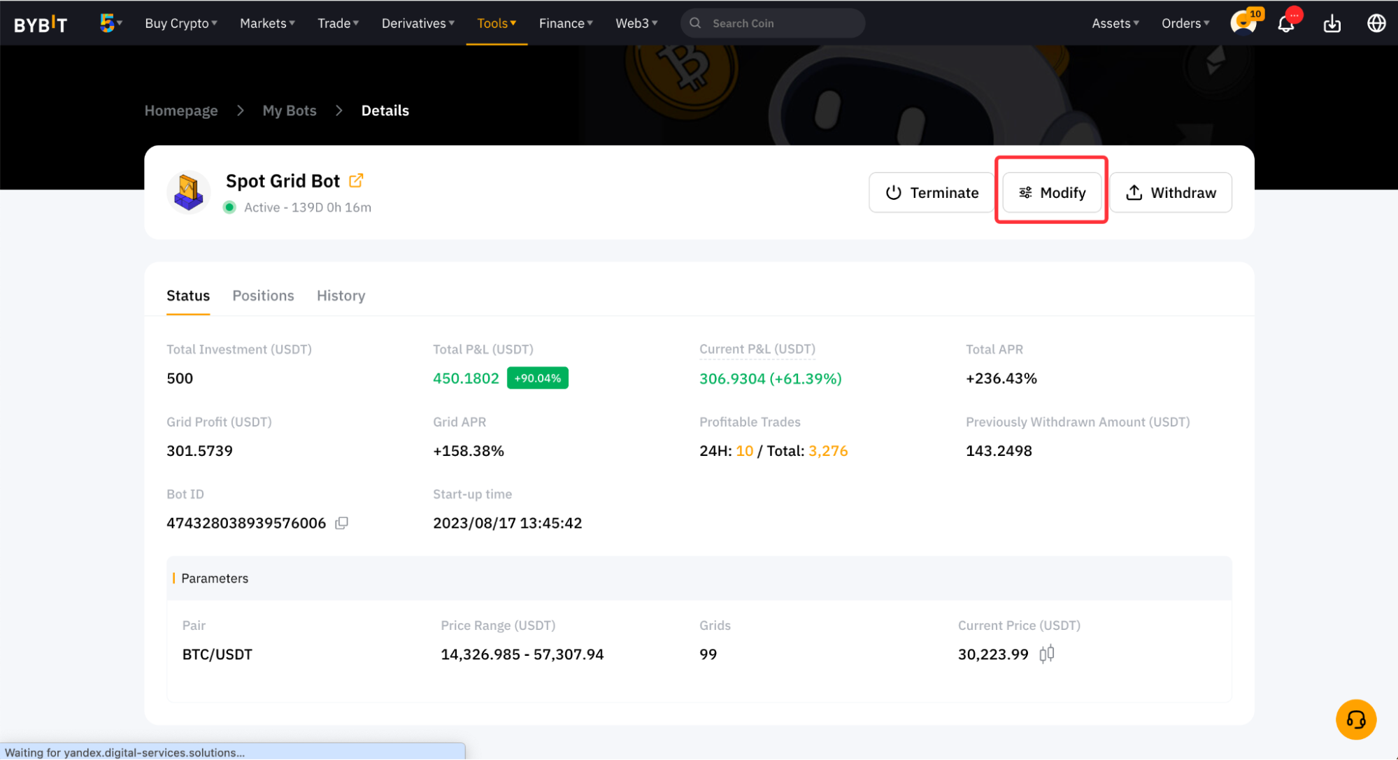 第 1 步:前往现货网格机器人详情页并点击修改