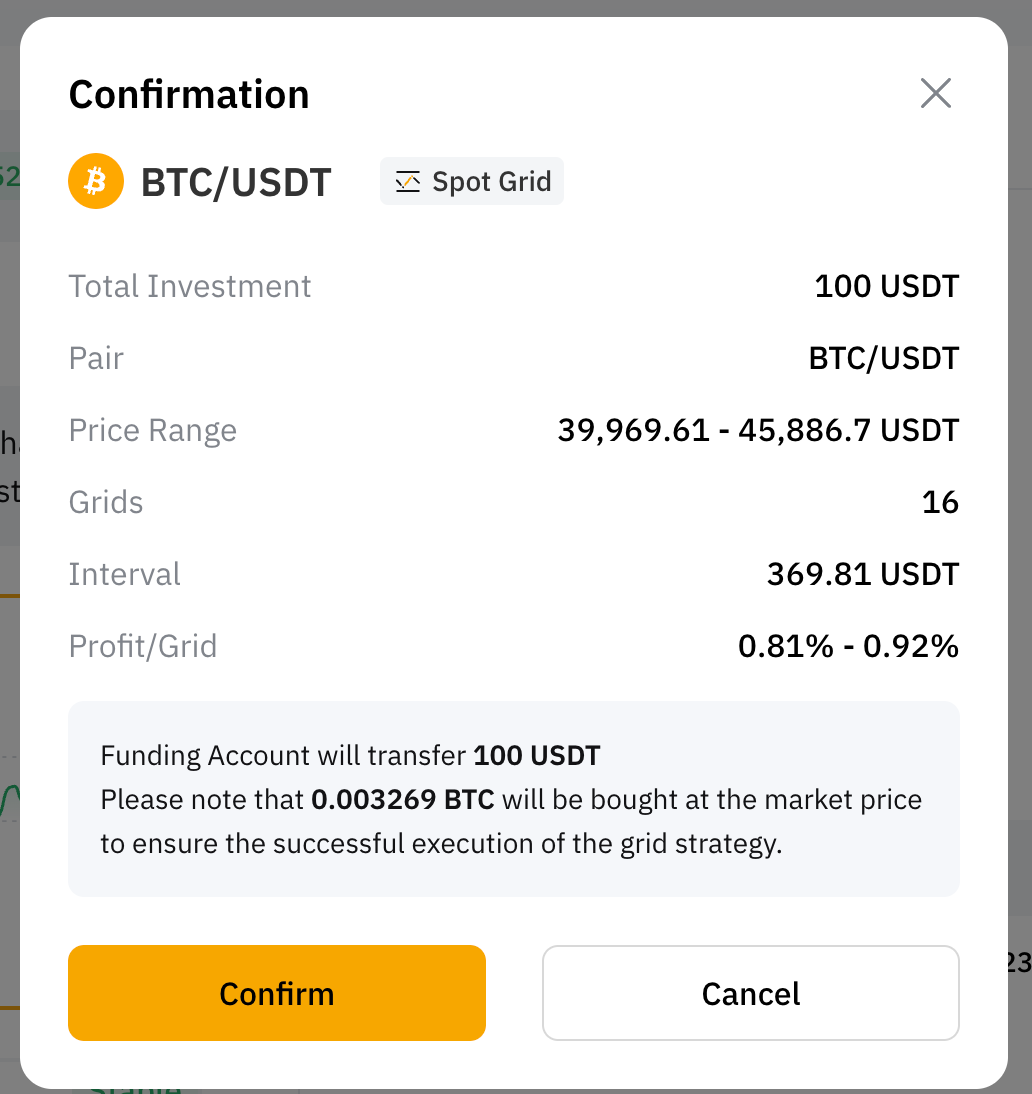 第 4 步:请再次确认您创建的网格机器人信息,然后点击确认开始交易