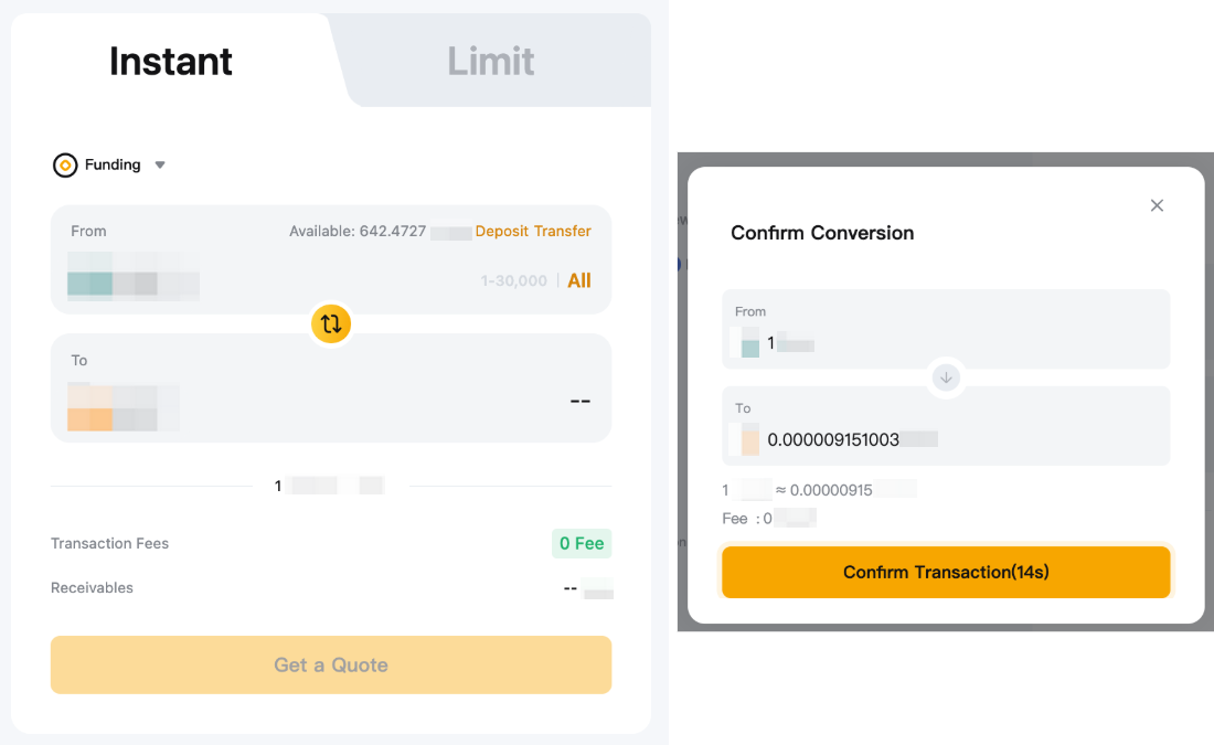 即时模式:确认交易后,您的资产将立即以页面上显示的报价进行兑换。