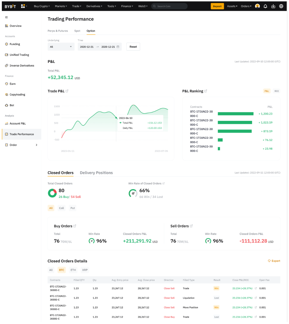 当前,期权的交易表现数据仅适用于统一交易账户用户,其账户可在逐仓保证金、全仓保证金和组合保证金模式下查看。