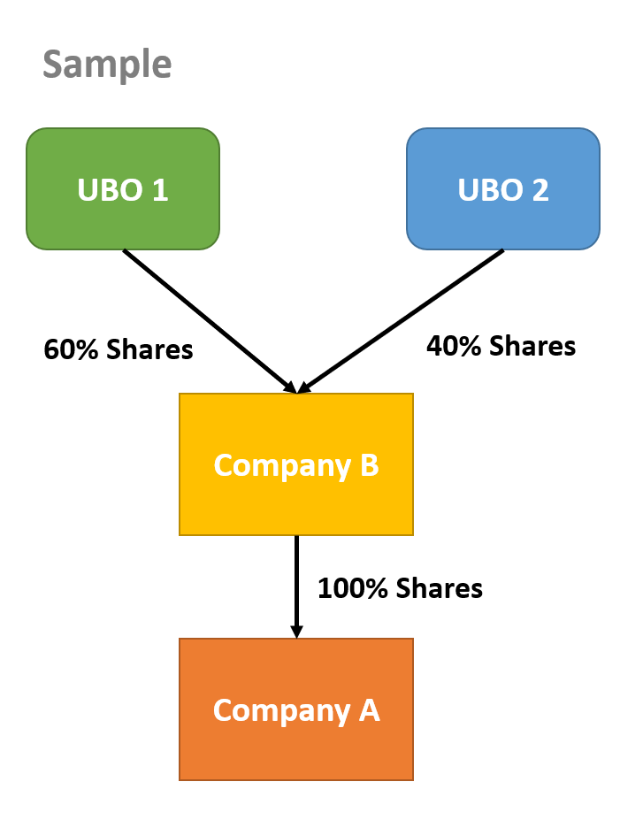 擁有公司 25% 或更多權益的最終受益所有人 (UBO) 的信息(姓名和國籍)。另一個驗證鏈接將通過電子郵件單獨生成,供最終受益人驗證身份。
