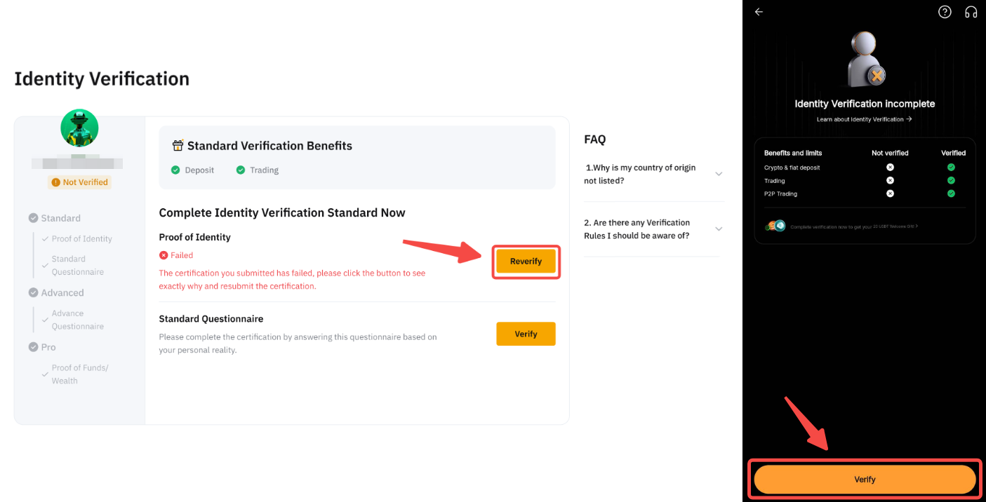 在您下次嘗試之前,請仔細閱讀我們的要求並準備相關證明文件。準備好您的設備和相機,並確保您處於明亮的環境中。一切就緒後,點擊【認證】重新進行 KYC 認證。