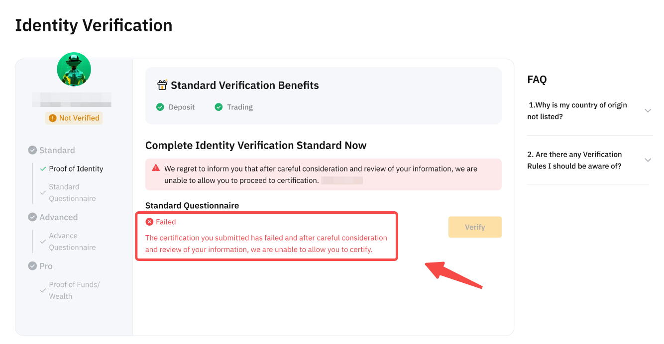 或者,您可以通過單擊 [?] 圖標從KYC身份認證頁面查看您的 KYC 認證結果。
