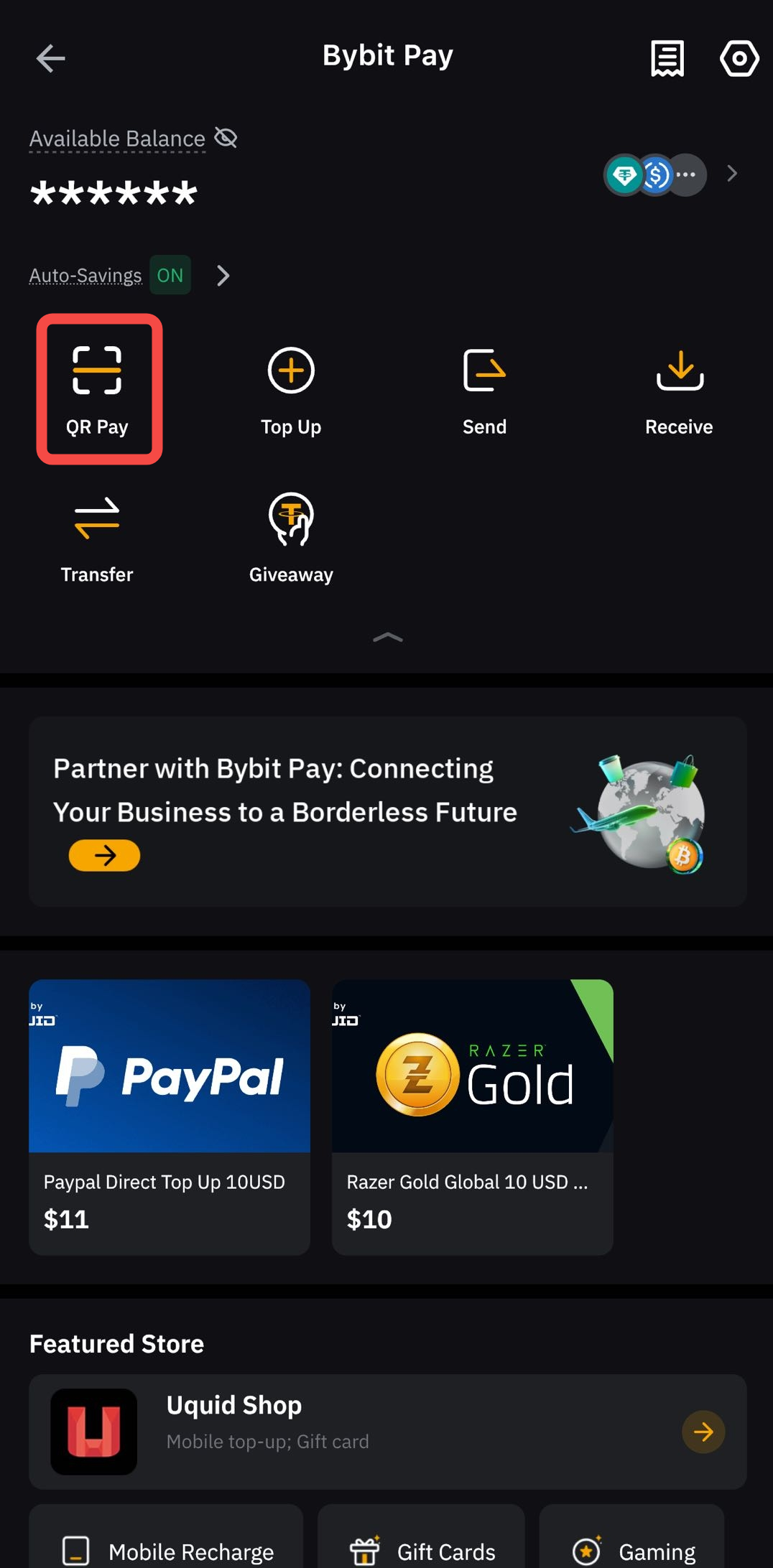 Bybit Pay 支援用戶向全球受支援市場中接受 Bybit Pay 的線上和店內商家付款。使用者只需掃描商家網站、App 或銷售點支付終端上顯示的 Bybit Pay 二維碼,或在 App 內享有無縫結帳體驗。