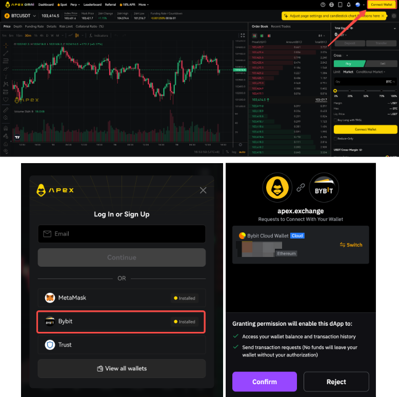 您仍可在Apex 網站上管理倉位。如果您之前使用過雲錢包進行交易,請使用擴充功能進行連線。