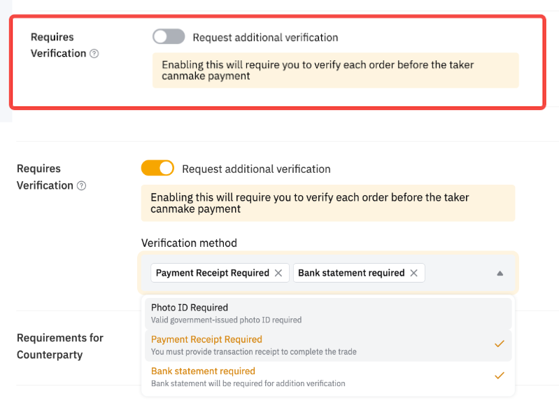 可以,認證廣告商和大宗廣告商可以在發布廣告時設定認證要求。如何在 P2P 上發布交易廣告中會有更多資訊。