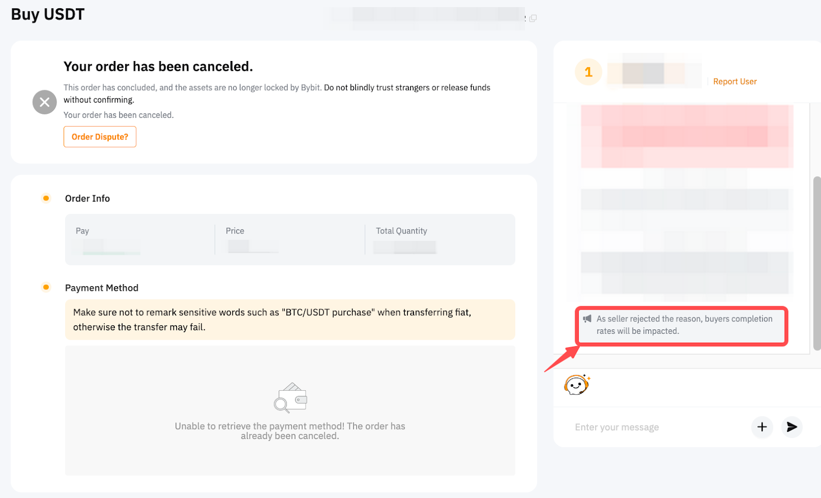 在對完成率提出申訴之前,請在相應的訂單聊天框中確認您的完成率是否因賣家拒絕您的要求而受到影響。