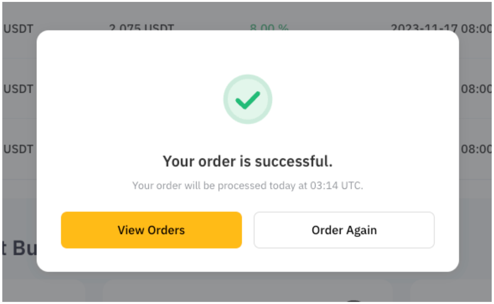 要查看折價買幣訂單記錄詳情,請在彈出的成功下單通知窗口中點擊查看訂單