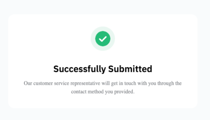 提供詳情后,繼續提交申請。 客服團隊將審核您的請求,並通過提供的註冊或可聯繫的郵箱位址與您聯繫。 整個過程大約需要 5-7 個工作日。