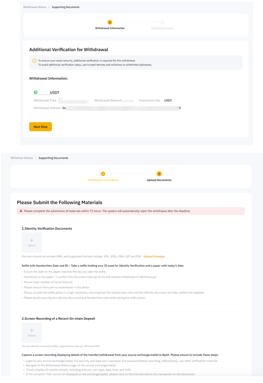 - 請注意,上述要求針對的是您之前向 Bybit 儲值的平台(例如 Binance、Kraken、Coinbase、MetaMask 及其他 Bybit 賬戶等),而非您當前 Bybit 賬戶中的交易詳情。