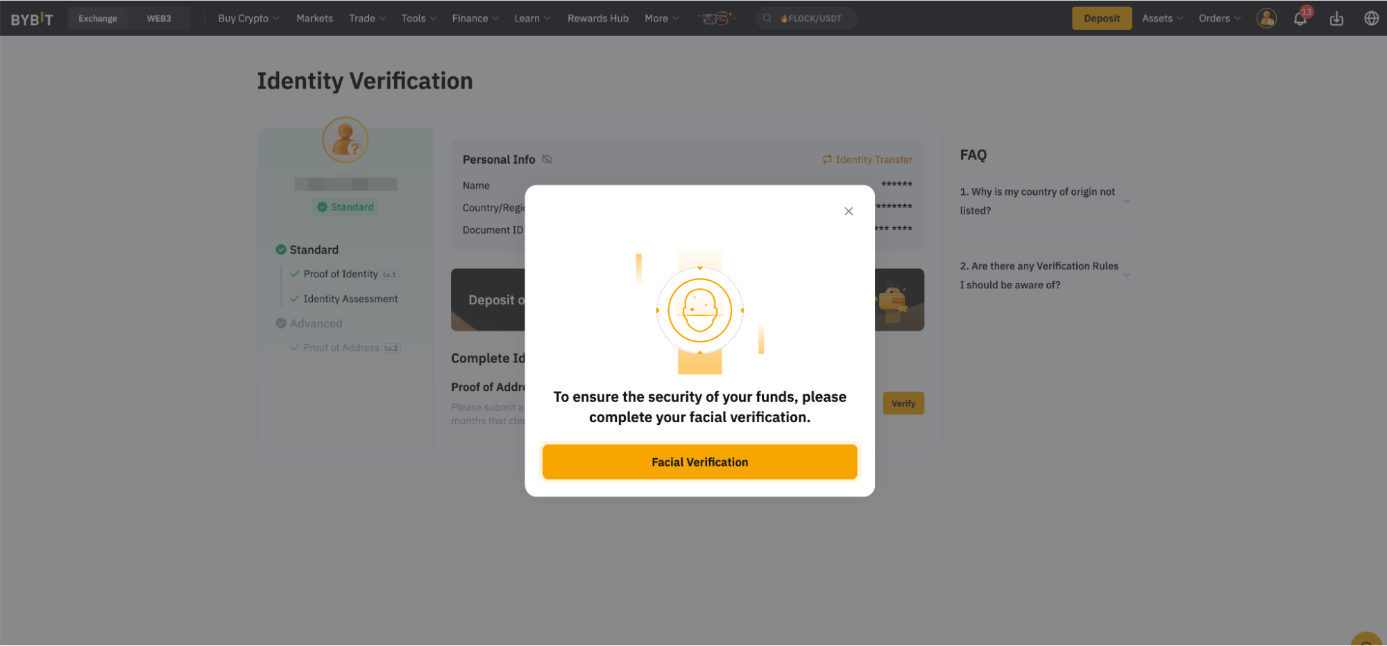 第 3 步:為確保賬戶和資金安全,您需要透過臉部認證或安全驗證碼等方式對當前賬戶進行一些驗證。請務必按照螢幕上所示的說明進行操作。