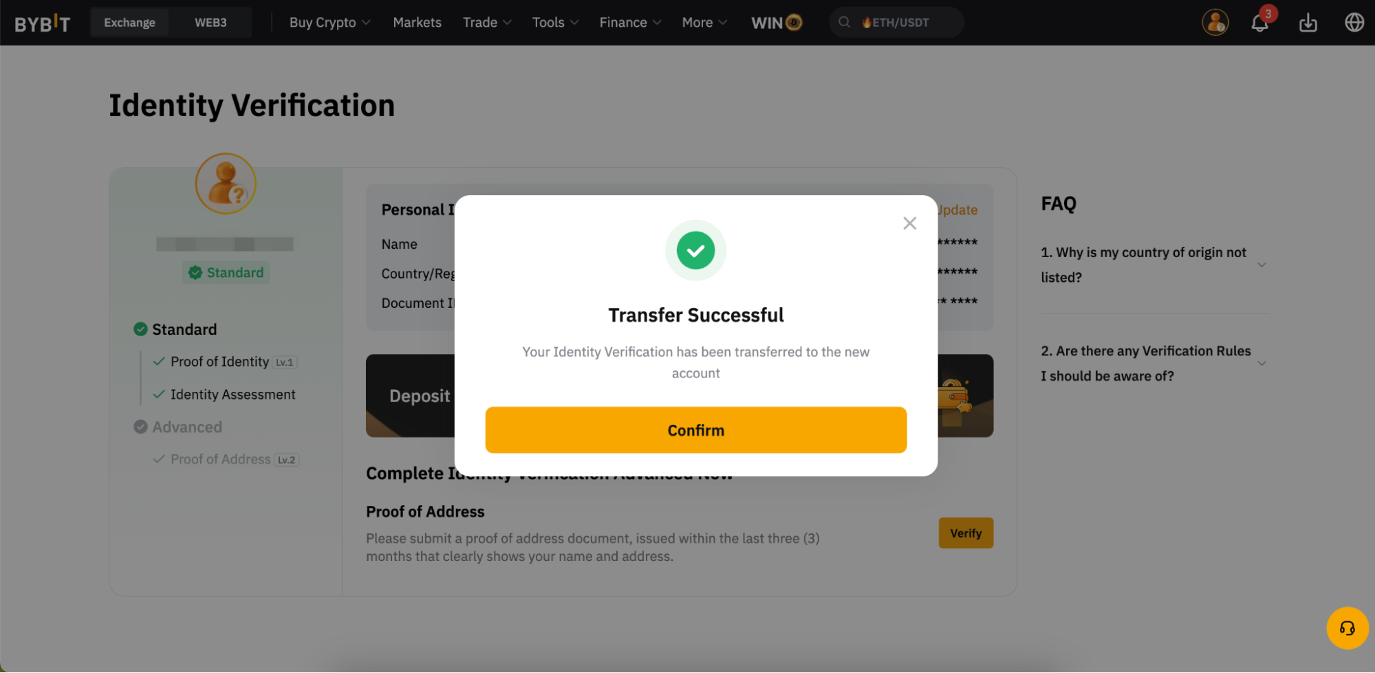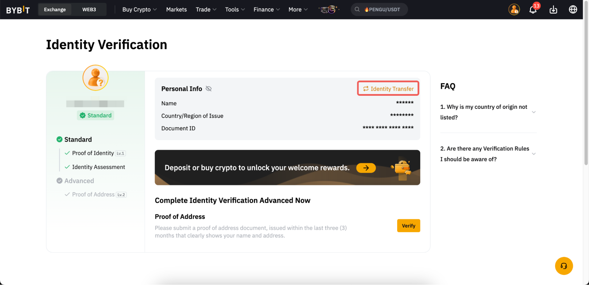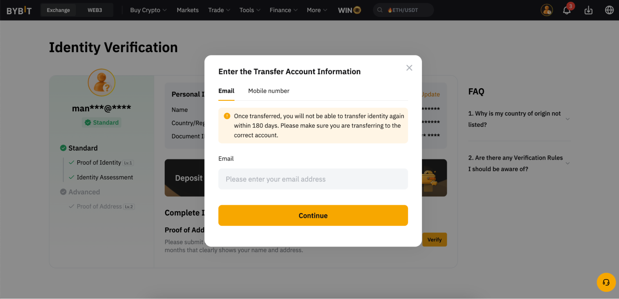 1. 身份轉移功能僅在您完成KYC驗證24小時後才可用。