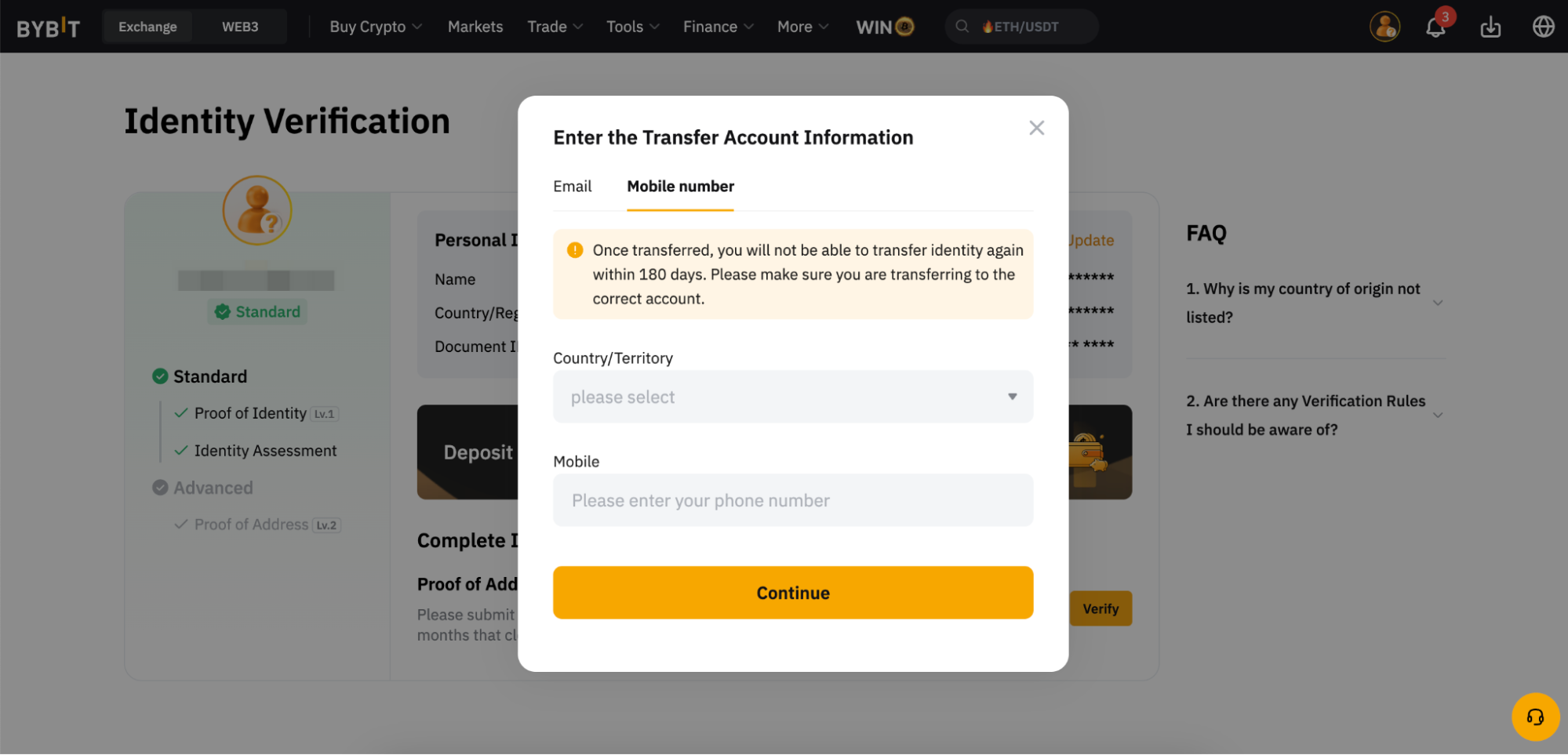 10. 對於Bybit卡持有者,建議您先透過卡片管理頁面終止您的Bybit卡,然後再進行身份轉移。 欲了解更多信息,請參閱Bybit卡常見問題