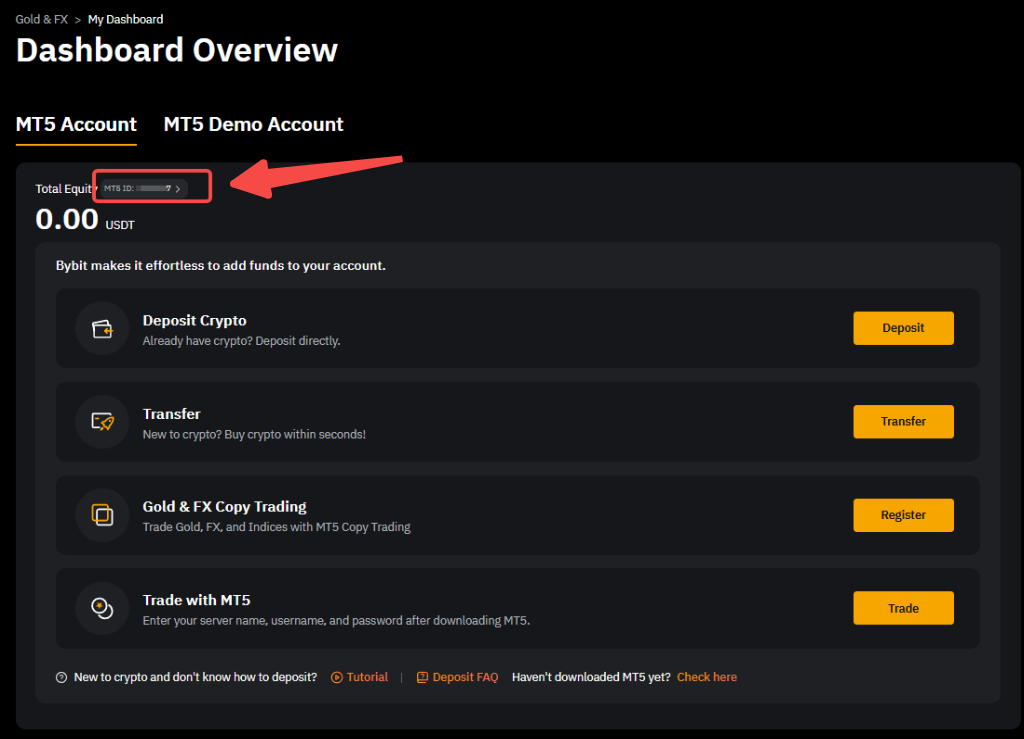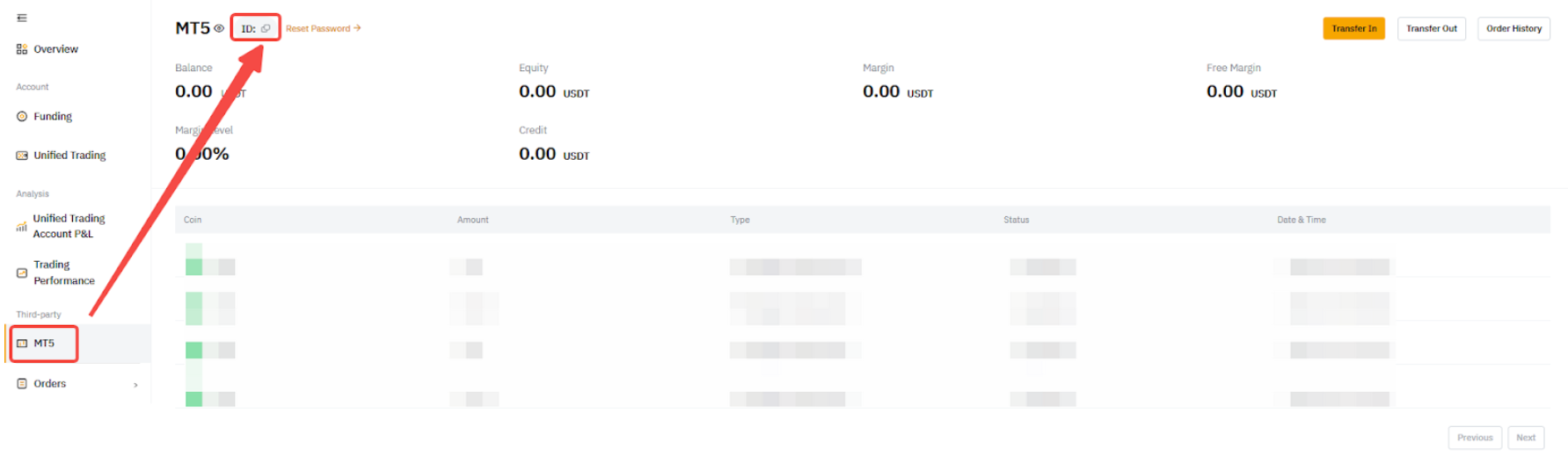 1. 您的 MT5 資產頁面中的 MT5 登入 ID 部分將為空。
