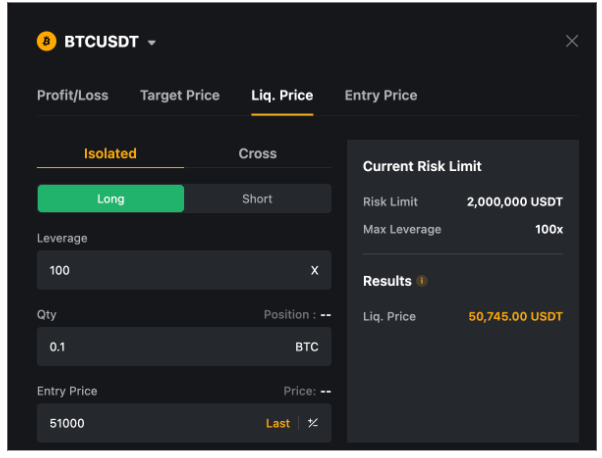 在常規衍生品交易中,交易者 A 的倉位可能會以 50,745 USDT 的價格強制平倉。