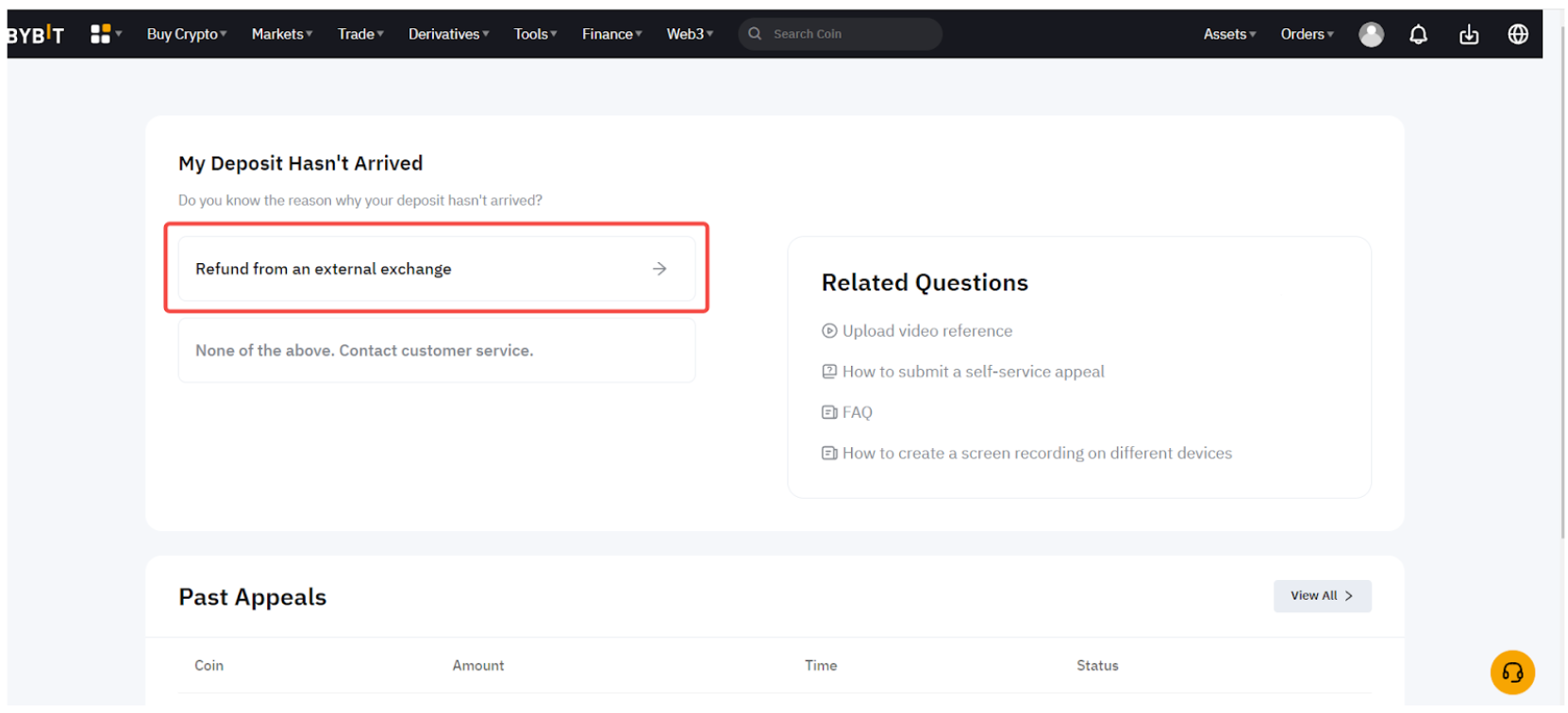 Bybit 現在為從其他平台收到退款;並希望將退款金額存入Bybit 資金帳戶的用戶提供自助申訴。