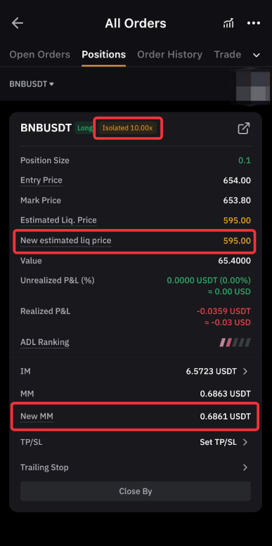 各倉位的強平價格和(基於標記價格計算出的)MM 可前往倉位區查看。