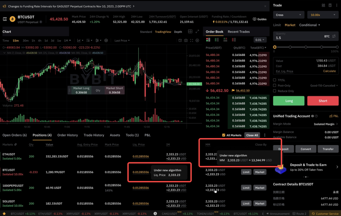 本例顯示,在下跌行情中,透過新算法計算出的 IM 和 MM 更低,從而延緩了強平觸發時間,提高了資金利用效率。