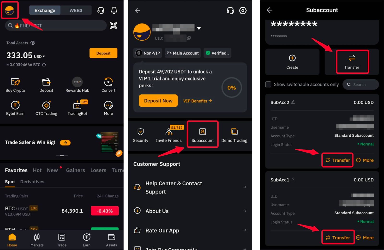 — 使用您的 Bybit 使用者名稱和密碼透過登入頁面登入子帳戶。在這種情況下,僅支援轉帳回主帳戶或相同子帳戶。