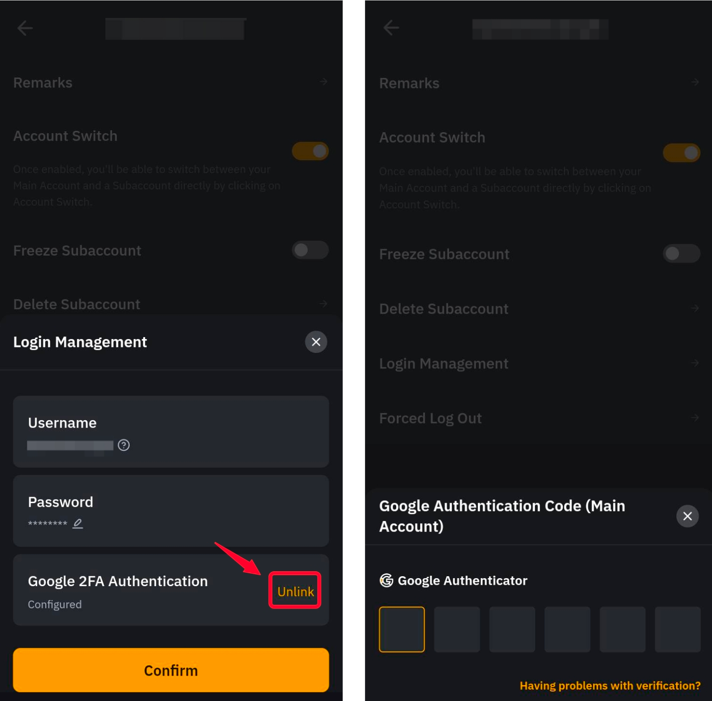 您需要輸入主帳戶的 Google 驗證碼,才能在子帳戶上有效解除 2FA 驗證綁定。